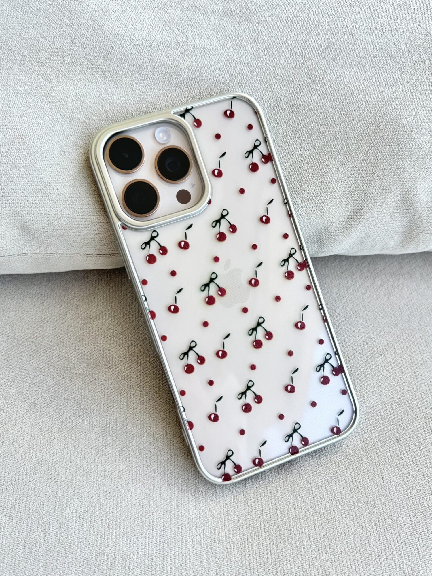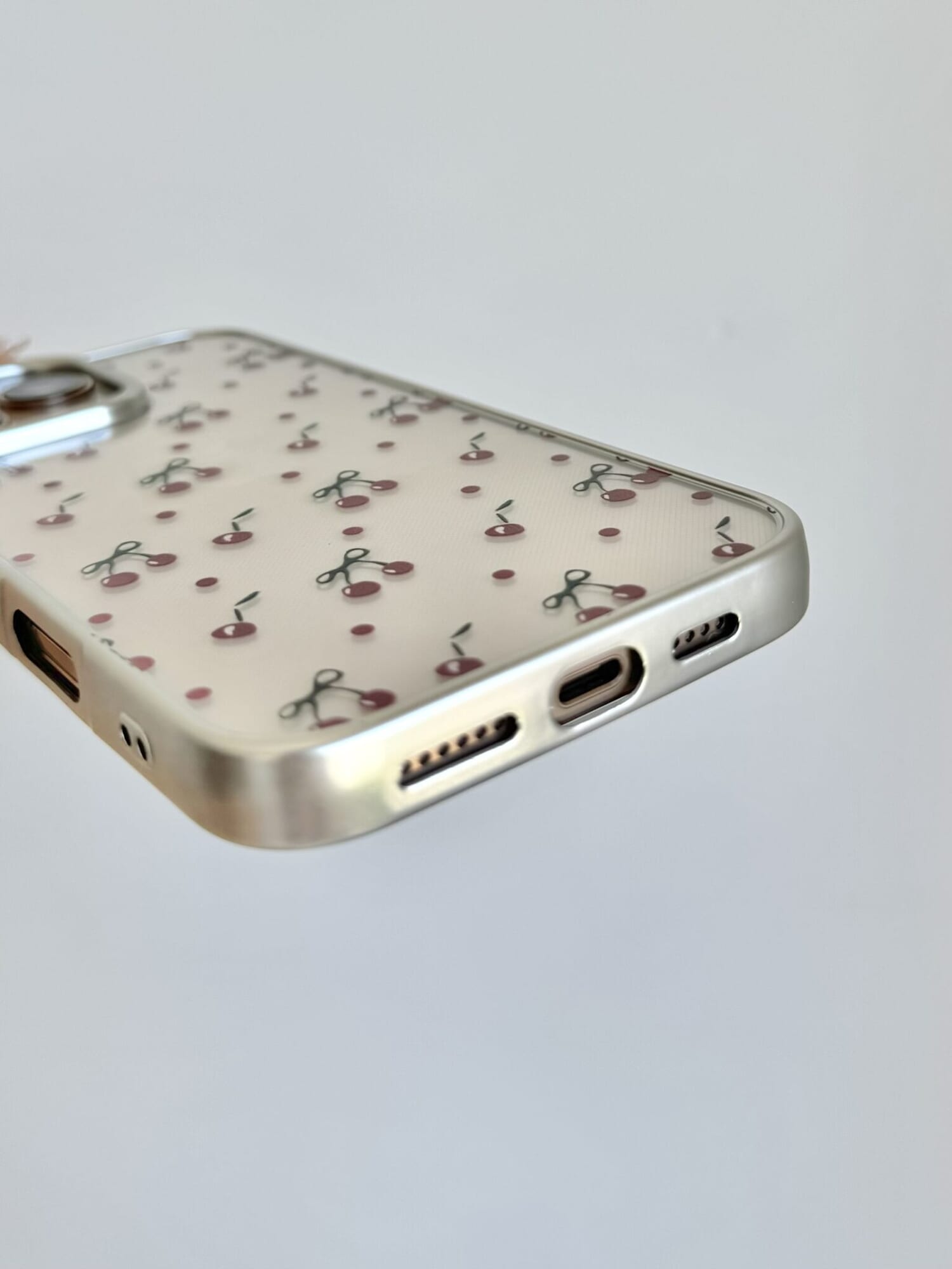 Case transparente con diseño cherry, material de silicona flexible con bordes y detalles en cámara plateados. Diseño muy en tendencia!