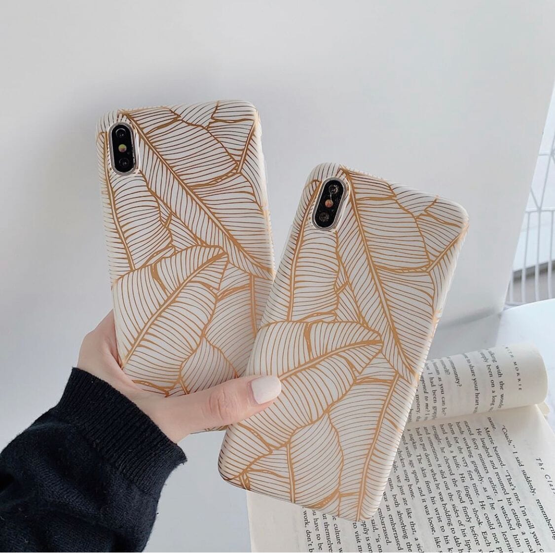 Case de silicona semi flexible, con detalles de hojas doradas grandes