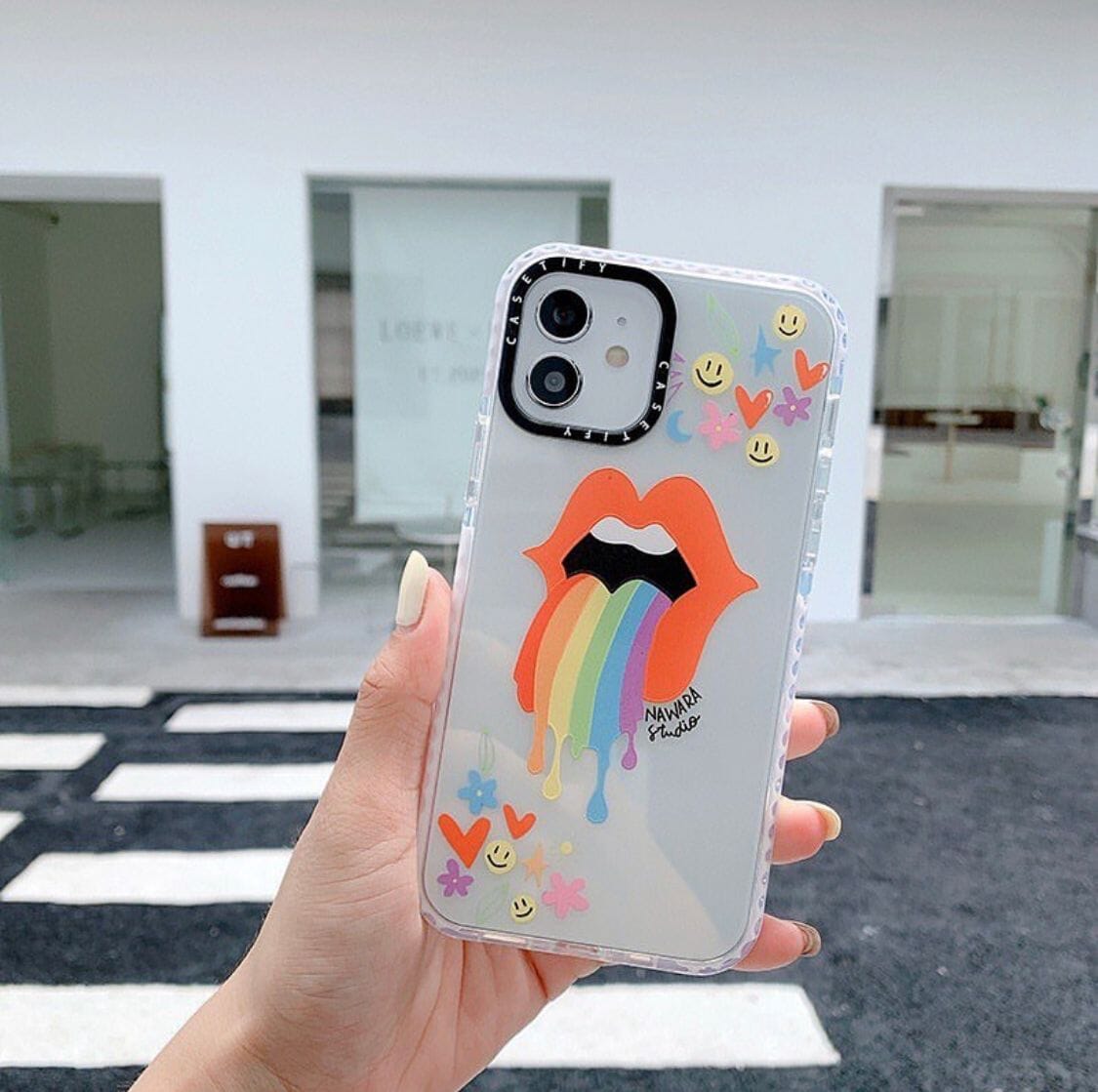 Case transparente estampada estilo Casetify de silicona semi flexible. Bordes reforzados