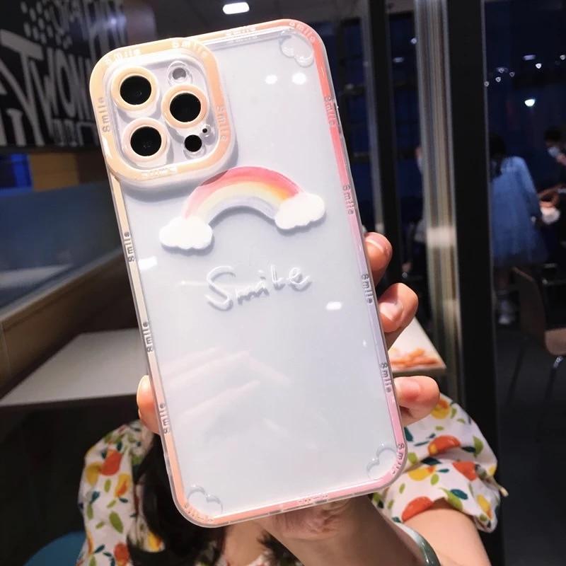 Case de tpu resistente flexible. Con diseño arcoíris y frase Smile