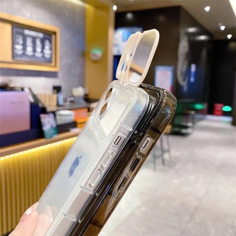 Case transparente semi flexible con tapita blanca, cuenta con protección en las cámaras