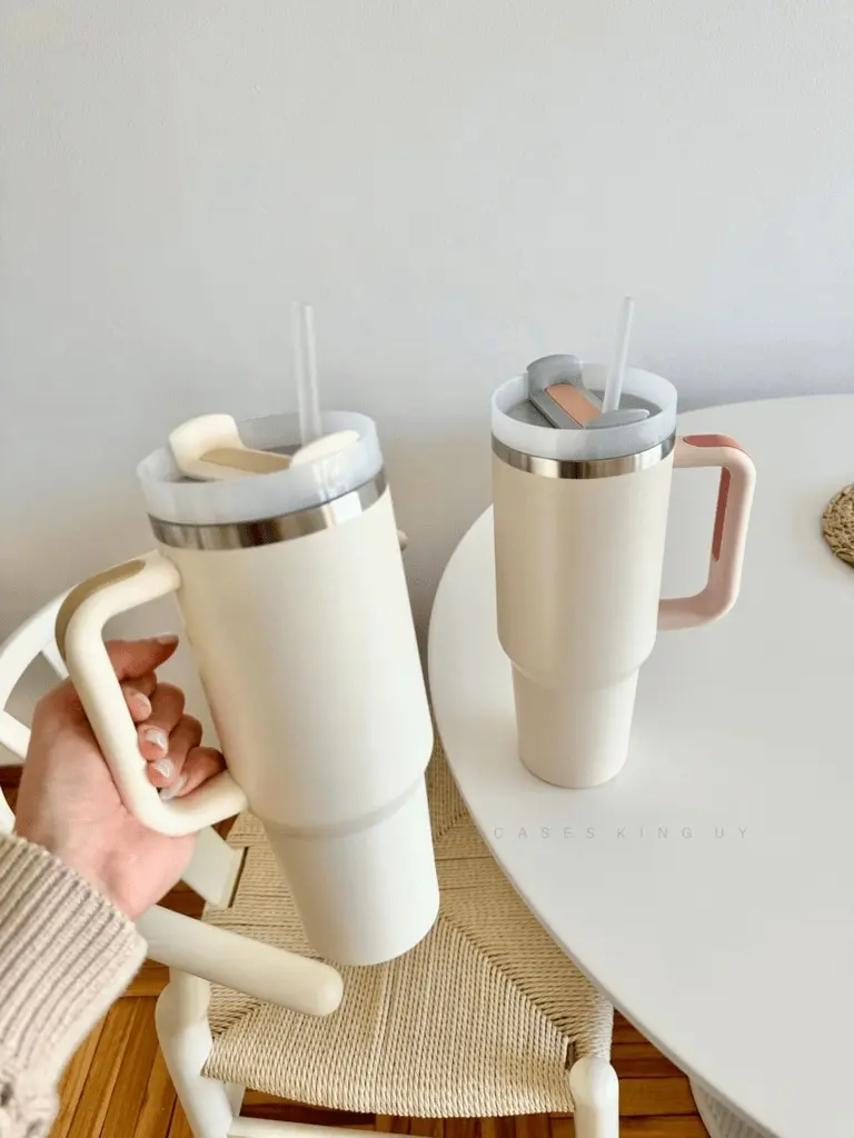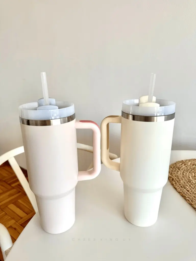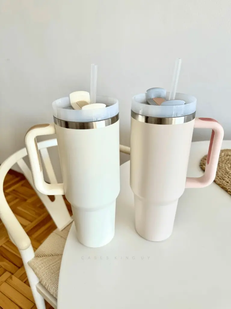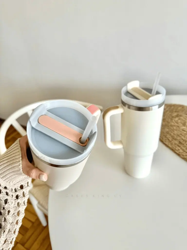 Vaso térmico trendy + 2 protectores de sorbito a elección. Aclarar en notas que diseños de protectores de sorbito quisieras. Vaso térmico súper en tendencia, con doble capa aislante de acero inoxidable para frío-calor. Capacidad 1.2 Litros. Con manija, podes usarlo con o sin sorbito. Disponible en color rosa viejo o crudo.
