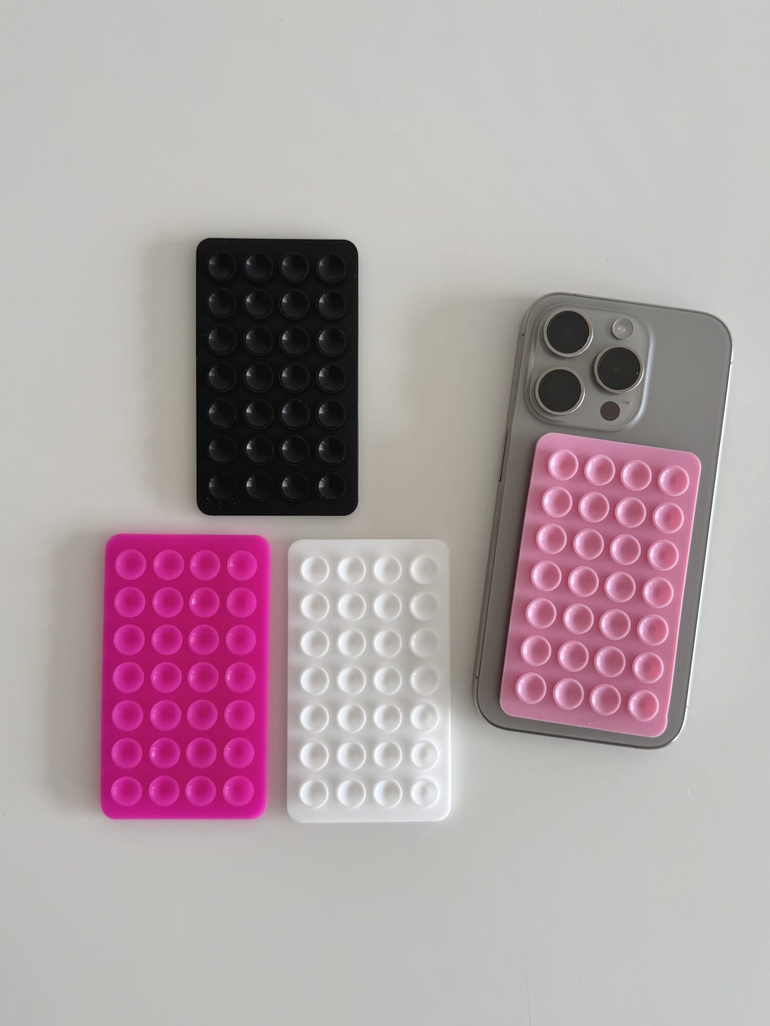 Práctica y versátil, esta ventosa de silicona doble se adhiere fácilmente a tu celular/case y a superficies lisas para que puedas grabar videos o sacar fotos tipo selfie sin usar las manos.